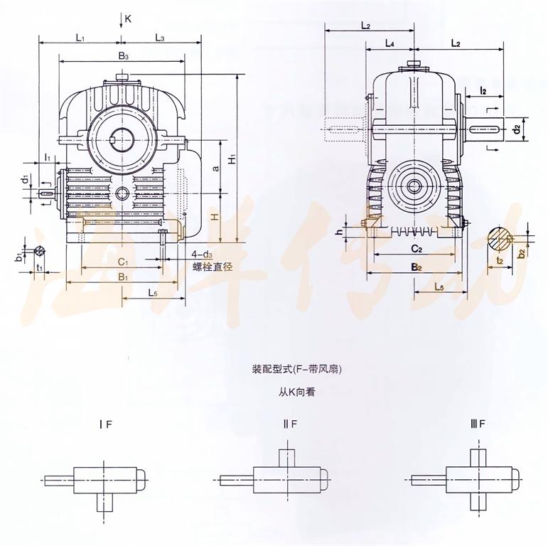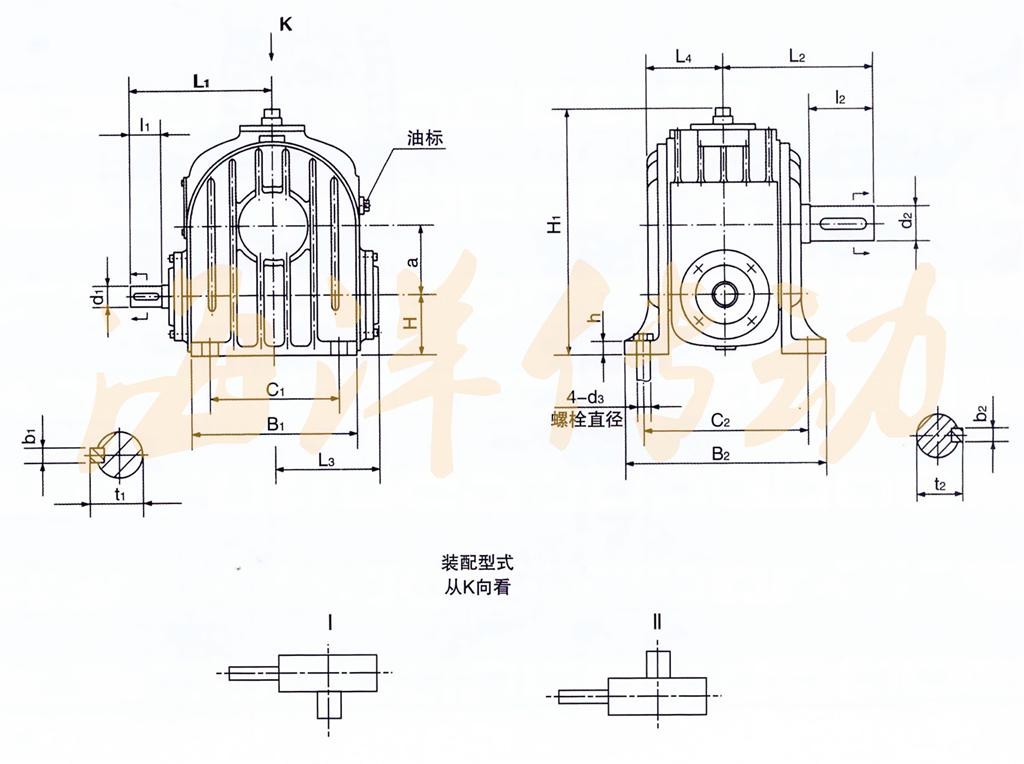 蝸桿轉(zhuǎn)速不超過1500r/min,蝸桿軸可正、反向運(yùn)轉(zhuǎn),工作環(huán)境溫度為-40℃~+40℃,當(dāng)工作環(huán)境溫度低于0℃,啟動(dòng)前潤滑油必須加熱到0℃以上,當(dāng)工作環(huán)境溫度高于40℃必須采取冷卻措施。