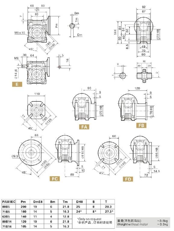 型號:025 030 040 050 063 075 090 105 110 130 150其中025-105為鋁合金外殼,110-150為鑄鐵外殼;減速比:1/5 1/7.5 1/10 1/15 1/20 1/30 1/40 1/50 1/60 1/80 1/100,其組合減速比可高達(dá)1/5000.