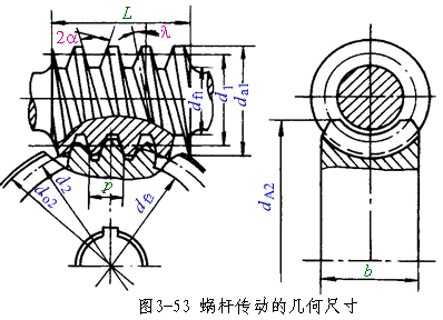導程角γ的范圍為3.5°一33°。導程角的大小與效率有關。導程角大時,效率高,通常γ=15°-30°。并多采用多頭蝸桿。但導程角過大,蝸桿車削困難。導程角小時,效率低,但可以自鎖,通常γ=3.5°一4.5°